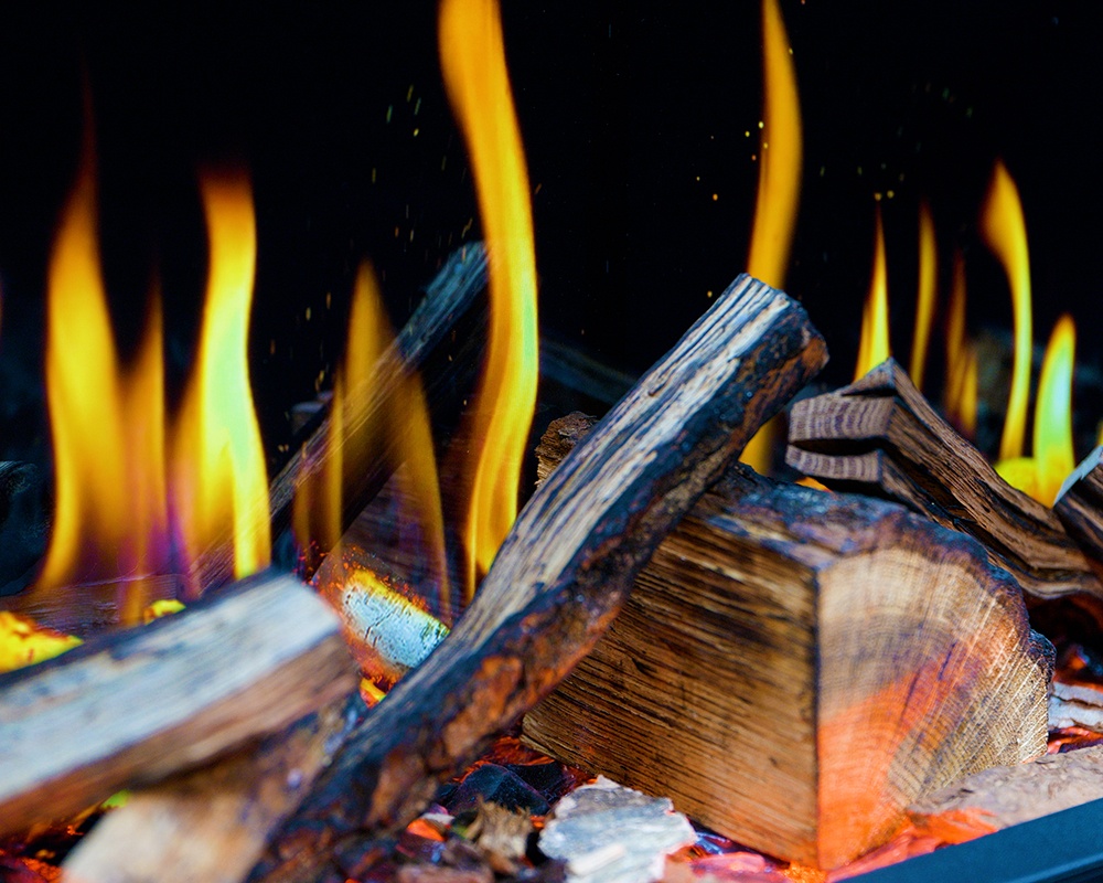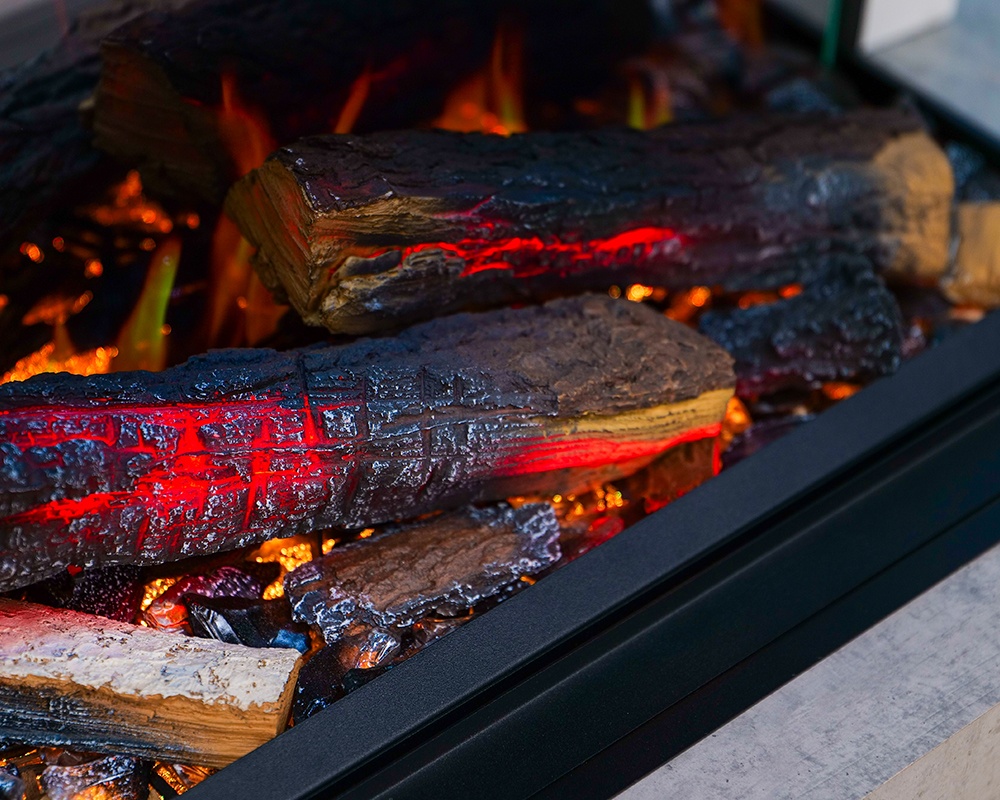 Las llamas proyectan ricos tonos ámbar que resaltan dramáticamente sobre la pantalla oscura, creando un punto focal cautivador que atrae la mirada hacia el corazón del fuego. La iluminación LED opcional realza su belleza, y con la opción de encastre, panorámica o de esquina, tendrá muchas opciones para crear la chimenea, pared multimedia o pared decorativa perfecta.