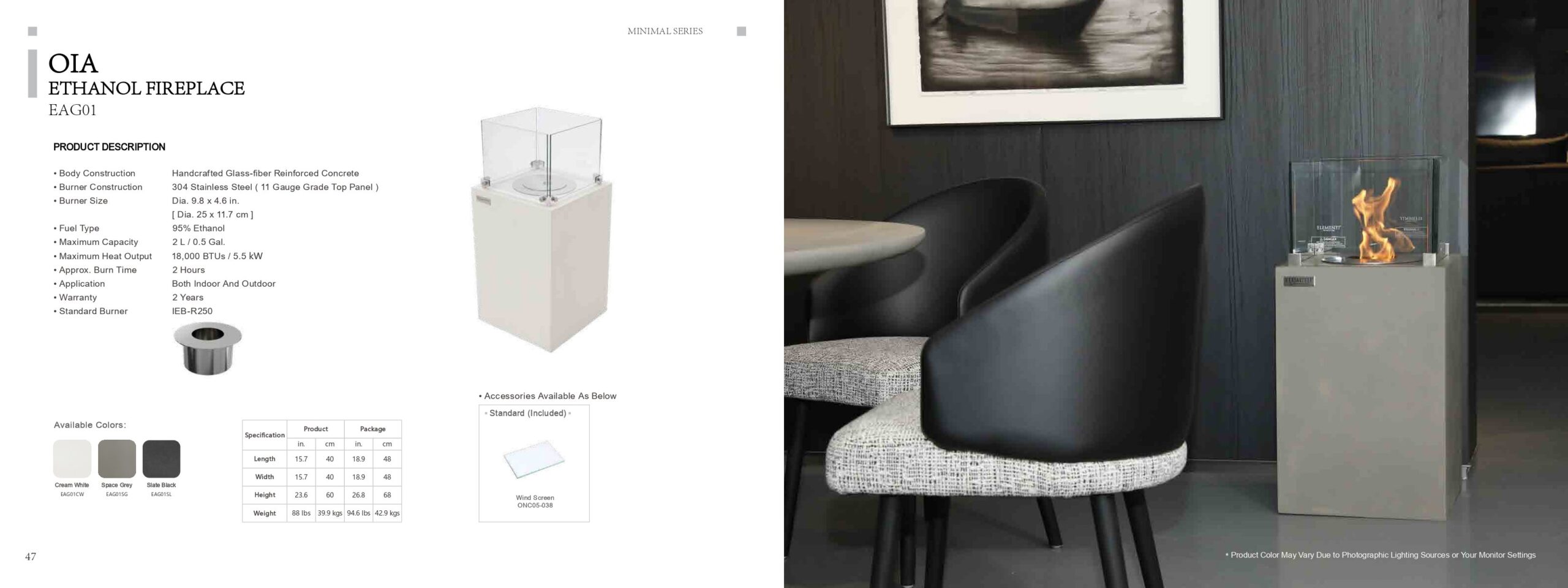 • Tiempo de combustión aproximado: 2 horas
